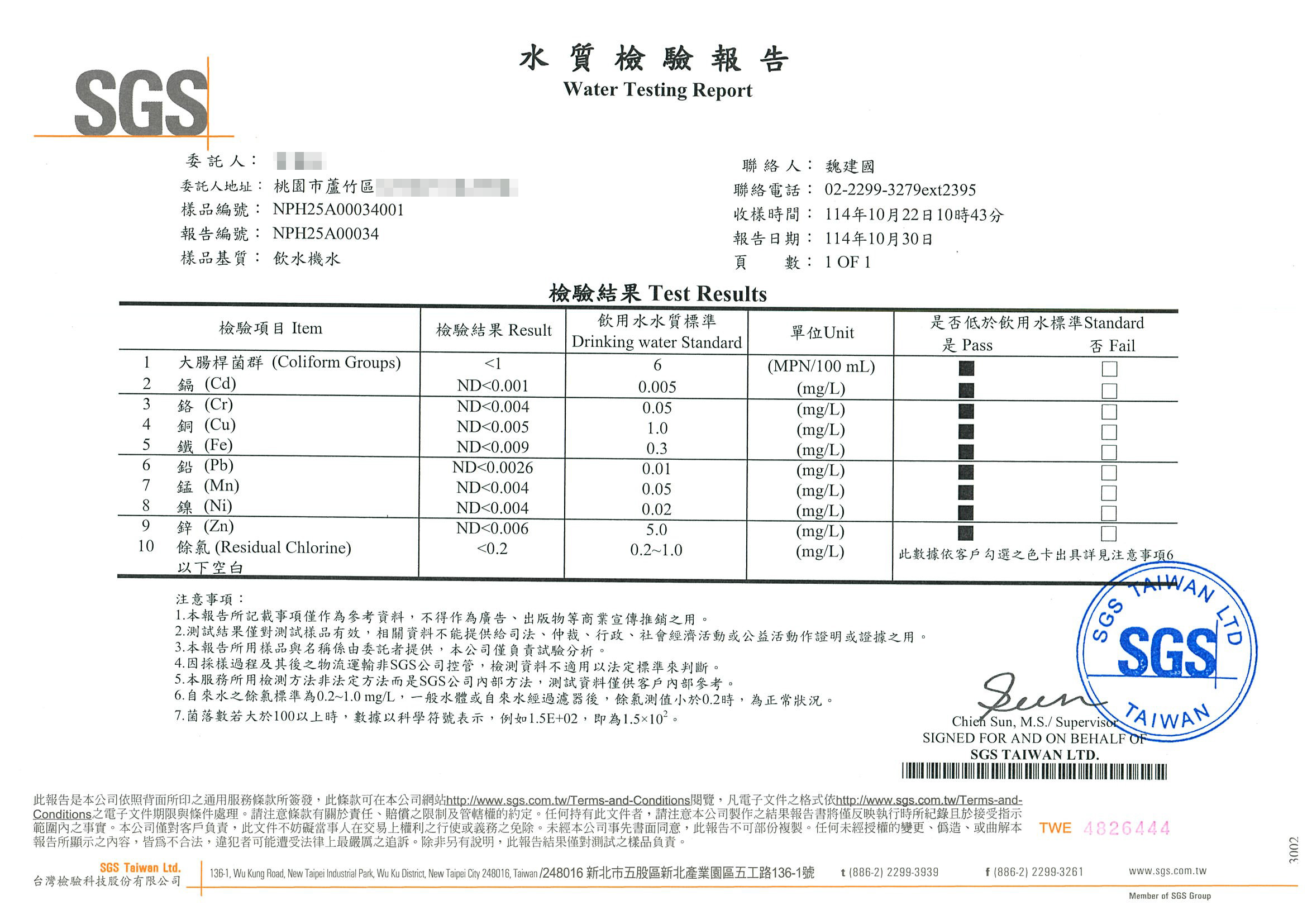 2025-10-22 桃園市水質檢測SGS