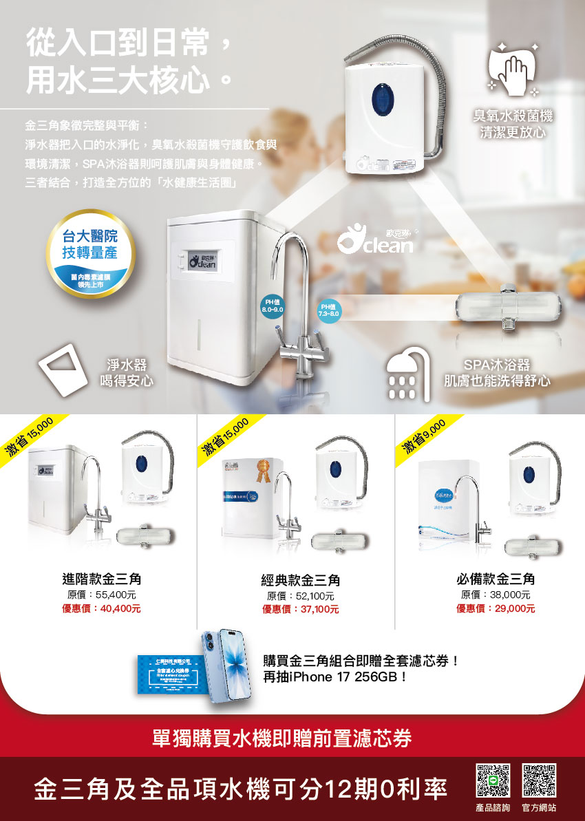【普發一萬加碼活動】購買金三角即贈全套濾芯券,加碼再抽iPhone 17