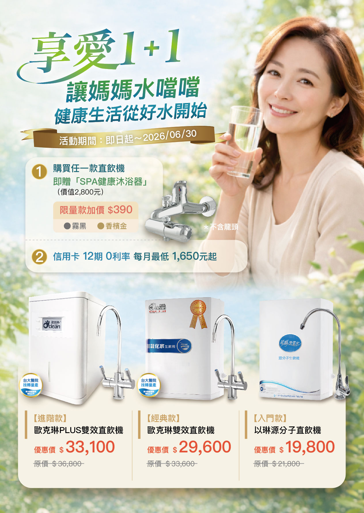 【享愛1+1】購買任一款直飲機即SPA沐浴器乙個